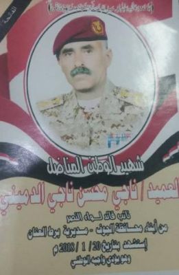 نعت وزارة الدفاع ورئاسة هيئة الأركان العامة اللواء ناجي محسن الدميني نائب قائد لواء النصر, الذي استشهد وهو يؤدي واجبه الوطني في ميادين الشرف والفداء في جبهة صبرين بمحافظة الجوف.