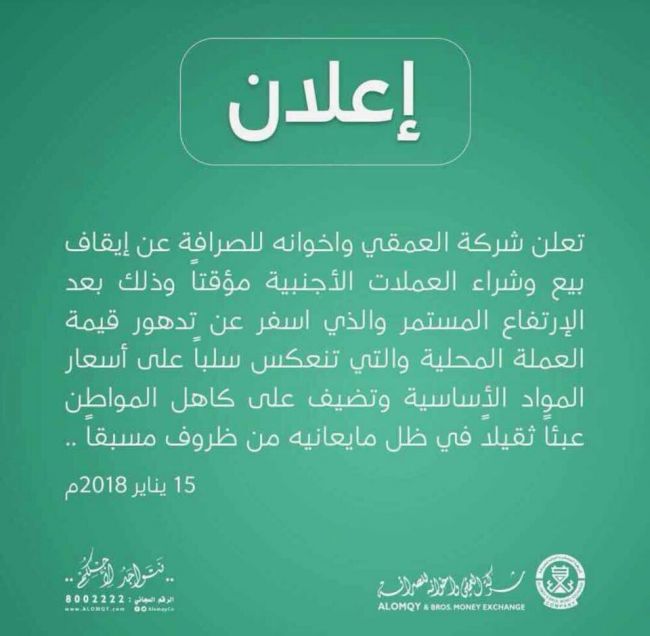 أوقفت شركات الصرافة المحلية في العاصمة صنعاء نشاطات تبادل وصرف العملات الأجنبية مؤقتاً.