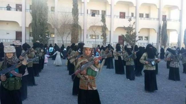 دشنت مليشيات الحوثي الانقلابية بشكل رسمي افتتاح معسكرات تجنيد خاصة بالنساء والأطفال الإناث في المحافظات التي يسيطرون عليها بالقوة .