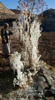 وأظهرت صور لمحاصيل زراعية وشجرة القات اليوم السبت وقد ضربت وتجمدت بالكامل في معظم محافظات