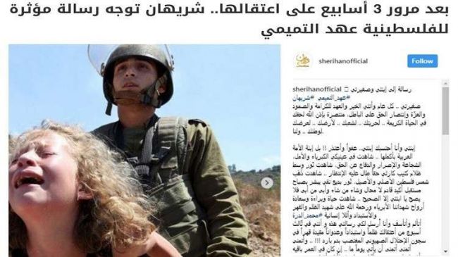 أكدت الفنانة المصرية شريهان أن إدارة موقع إنستغرام للتواصل الاجتماعي حذف رسالة وجهتها للفتاة الفلسطينية عهد التميمي، المعتقلة في السجون الإسرائيلية.