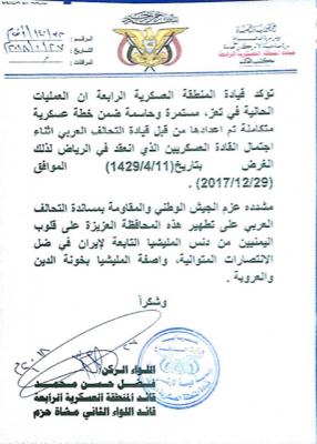 قال الجيش اليمني، السبت، إن العمليات الحالية في تعز مستمرة وحاسمة ضمن خطة عسكرية متكاملة تم إعدادها من قبل قيادة التحالف العربي لدعم الشرعية في اليمن، وذلك أثناء اجتماع القادة