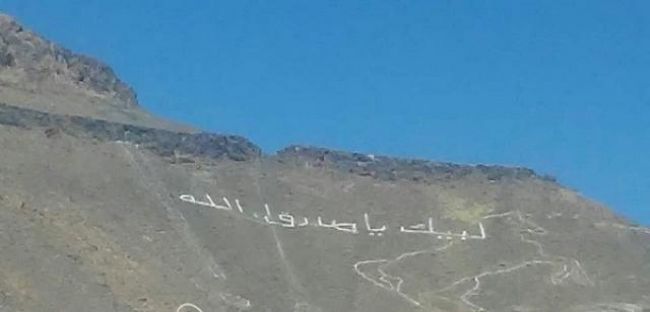 صحى الحوثيون يومنا هذا ليجدو في جبل يفعان مقوله بسنحان محافظة صنعاء عبارة مكتوبة بالابيض العريض “لبيك يا طارق”.حيث افادت مصادر ميدانية انه كان مكتوب بالجبل عبارة لبيك يارسول الله ضمن