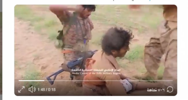 نشر مراسل نشطاء على تويتر فيديو للجيش الوطني في حجه، يظهر في الفيديو وقوع أسير حوثي بيد الجيش الوطني، وسارع جندي من الجيش الوطني بإسعافه.