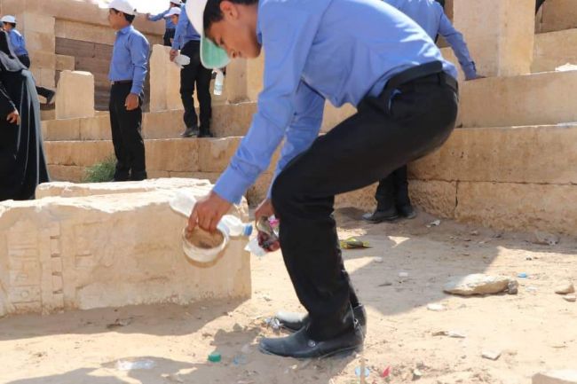 تطوّع، الاثنين 29 اكتوبر/تشرين 2018م، أطفال مجندون كانو يقاتلون في صفوف مليشيا الحوثي تم إعادة تأهيلهم، بتنظيف موقعين أثريين من المخلفات التي تغطي أجزاء كبيرة من منهما، في محافظة مأرب (شرقي