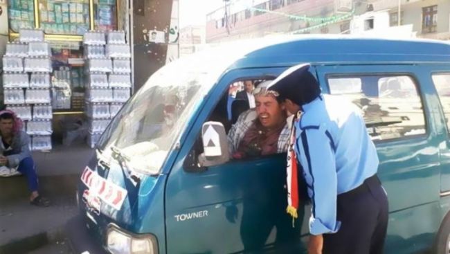لا مخالفات سير ورقية .. من يُخطئ يُعاقب فوراً .. تحت مظلته الحديدية وسط دوار الشارع العام في مدينة صعدة (شمالي اليمن) ينظم علي عيسى حركة السير كعادته كل يوم منذ فبراير/شباط 1990، حتى