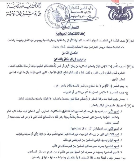 وأثار ما يسمى بقانون الزكاة الجديد الذي أصدرته المليشيا الحوثية والذي قرر "الخمس" للسلالة من النفط والغاز والذهب والمعادن والملح والزئبق والاحجار والرخام والنيس والسمك في البحر و العسل في الجبل، جدلا و ردود فعل غاضبة و واسعة.