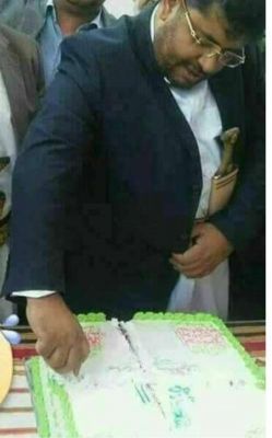 شاهد صورة لمحمد على الحوثي اثارت سخرية كبيرة .. قطع التورتة بمفتاح سيارته