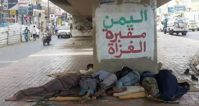 ويبرز في الصورة التي التقطت من أحد الكباري بصنعاء مجموعة من الشباب مكومين ببؤس أمام جدار كتب عليه بخط عريض "اليمن