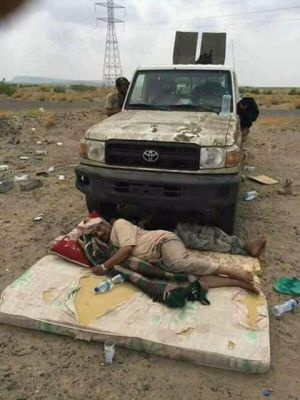 اشتعلت مواقع التواصل الاجتماعي بصورة التقطت لقائد عمليات "الرمح الذهبي" العسكرية، هيثم قاسم طاهر، أثناء غفوته في أحدى جبهات القتال ضد المليشيات الانقلابية على الساحل الغربي لليمن.