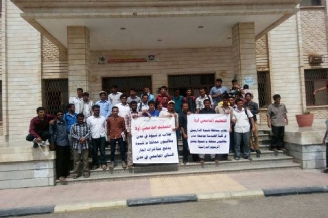 نظم طلاب من أبناء محافظة شبوة الدارسين في كلية الهندسة بالعاصمة المؤقتة عدن وقفة احتجاجية أمام سكنهم وأمام كلية الهندسة احتجاجا على التهميش وعدم تفقد أحوال سكنهم من قبل السلطة المحلية