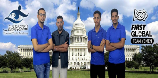 ستشارك اليمن للمرة الأولى في تاريخها، في المسابقة العالمية للروبوت FIRST GLOBAL، والتي ستقام في عاصمة الولايات المتحدة الأمريكية واشنطن، وبمشاركة 160 دولة مختلفة. ويتكون الفريق الذي سيمثل