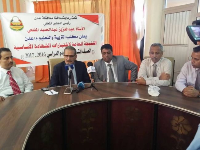 عقد صباح يوم الأربعاء في مكتب التربية والتعليم بالعاصمة المؤقتة عدن اجتماع لأعلان النتيجة العامة لاختبارات الشهادة الأساسية (الصف التاسع) للعام الدراسي 2016 – 2017م، برئاسة محمد عبد