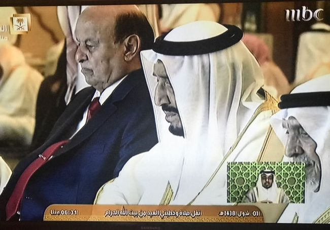 أدى فخامة المشير عبدربه منصور هادي وإلى جانبه الملك سلما بن عبدالعزيز - يحفظهما الله - صلاة عيد الفطر المبارك في مكة المكرمة .