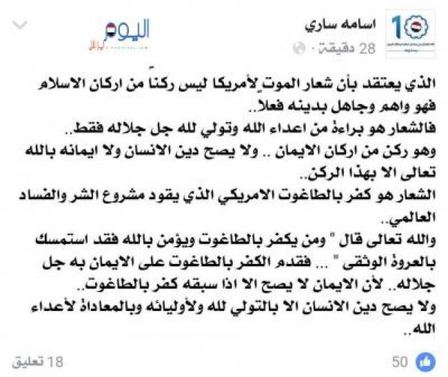 وتأكيداً على ذلك ما قاله صحفي وقيادي حوثي بأن شعار الصرخة ركناً من أركان