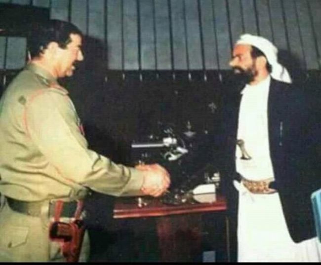 نشر موقع "يمن24" صورة وصفها بالخاصة للشيخ احمد ناصر الذهب وهو يصافح الرئيس العراقي الراحل الشهيد صدام حسين.والشيح أحمد ناصر الذهب هو شيخ مشايخ رداع وقد تم اغتيالة عام 1987م في كمين يقف