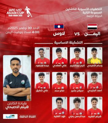 أعلن الجهاز الفني لمنتخبنا الوطني للناشئين تحت 17 سنة عن التشكيلة الأساسية التي ستخوض مواجهة اليوم المرتقبة أمام منتخب لاوس، ضمن التصفيات الآسيوية المؤهلة إلى نهائيات كأس آسيا للناشئين