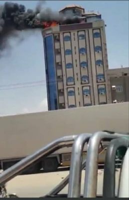 وبحسب شهود عيان فقد اندلع الحريق في فندق دريم بلازا بخط التسعين بمديرية المنصورة في العاصمة عدن.