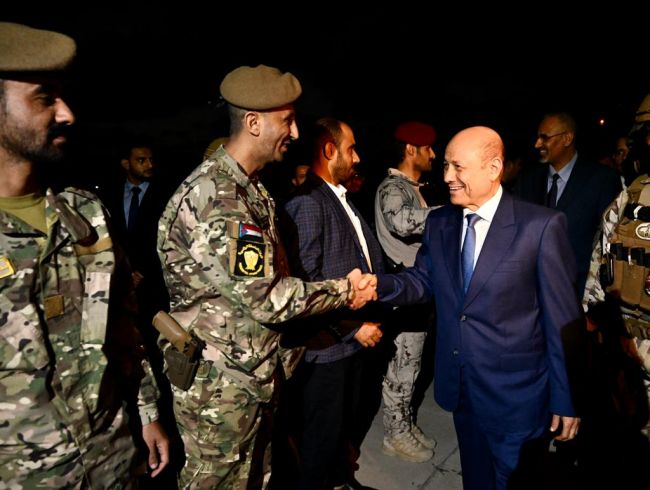 عاد فخامة الرئيس الدكتور رشاد محمد العليمي رئيس مجلس القيادة الرئاسي، اليوم الاربعاء، ومعه عضو المجلس عيدروس الزبيدي الى العاصمة المؤقتة عدن.