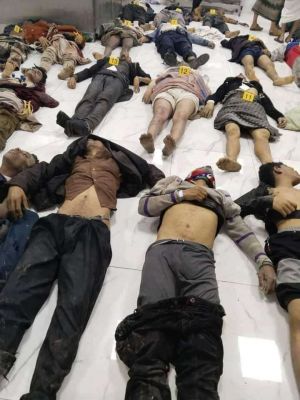 تداول نشطاء مواقع التواصل الاجتماعي، فجر اليوم الخميس، صورة من داخل أكبر مستشفيات العاصمة المحتلة صنعاء، وهي تكتظ بعشرات الجثث التي خلفتها مجزرة زكاة باب اليمن مساء الأربعاء.