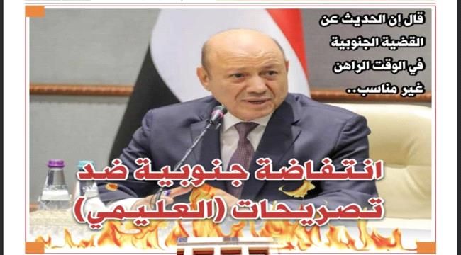 فجرت تصريحات رئيس مجلس القيادة الرئاسي رشاد العليمي غضب عارم في الشارع الجنوبي بعد قوله إن نقاش "القضية الجنوبية في هذه اللحظة قد يكون غير مناسب".