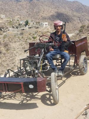 ابتكر شاب ثلاثيني في مديرية الشعيب بالضالع سيارة وطور نسخة أخرى من سلاح الكلاشنكوف وذلك بامكانيات بسيطة ومتواضة.