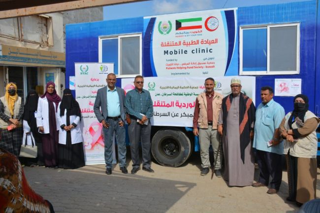 دشنت المؤسسة الوطنية لمكافحة السرطان بالعاصمة المؤقتة عدن، اليوم ، مشروع العيادة "العربة" المتنقلة للكشف المبكر عن سرطان الثدي في مجمع البساتين مديرية دار سعد بتمويل من