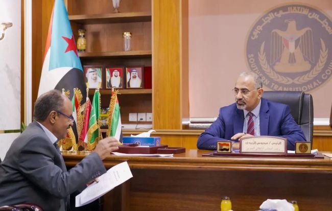 التقى الرئيس القائد عيدروس قاسم الزُبيدي رئيس المجلس الانتقالي الجنوبي، نائب رئيس مجلس القيادة الرئاسي بمكتبه في العاصمة عدن اليوم الاثنين، رئيس المنطقة الحرة بعدن حسن حيد.