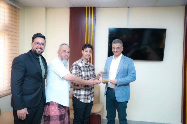 كرم وزير الدولة محافظ العاصمة عدن الأستاذ أحمد حامد لملس الطالب علي نصر الصوفي، من ذوي الاحتياجات الخاصة، لتفوقه في امتحانات الثانوية العامة وحصوله على المركز الأول في القسم