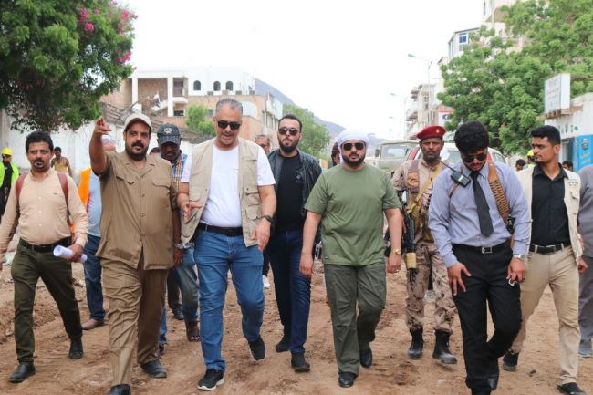 أطلع معالي وزير الاشغال العامة والطرق المهندس سالم محمد الحريزي على سير العمل بمشروع صيانة وإعادة تأهيل شارع السواعي بالمعلا في عدن.