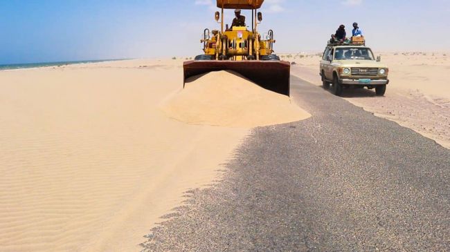 قامت الفرق الفنية بتمويل ذاتي من صندوق صيانة الطرق والجسور المركز الرئيسي-العاصمة عدن على إزاحة الرمال من خط المخا عدن.