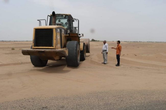 تواصل الفرق الفنية التابعة للمؤسسة العامة للطرق والجسور فرع لحج وبتمويل صندوق صيانة الطرق والجسور المركز الرئيسي-العاصمة عدن إزاحة الرمال من خط الحسيني .