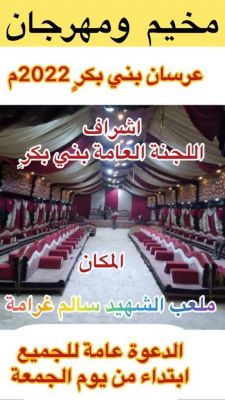 وقالت اللجنة أن مهرجان اعراس بني بكرٍ لعام 2022م سيكون في مخيم كرنفالي فني
