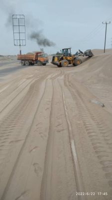 تستمر أعمال إزاحة الرمال من جسر الحسيني على طريق الحوطة نوبة دكيم بمحافظة لحج.