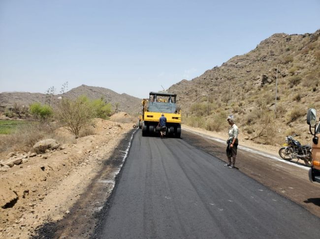 وتقوم الفرق الفنية بتمويل ذاتي من صندوق صيانة الطرق والجسور المركز الرئيسي-العاصمة عدن بأعمال السفلتة للخط.