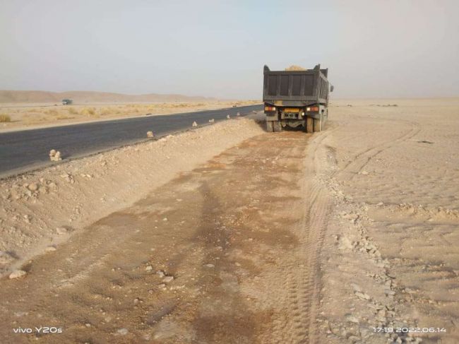 تتواصل أعمال إزاحة الرمال بالخط الساحلي الدولي في مديرية رضوم بمحافظة شبوة شرق البلاد بتمويل ذاتي عبر صندوق صيانة الطرق والجسور المركز الرئيسي-العاصمة عدن.