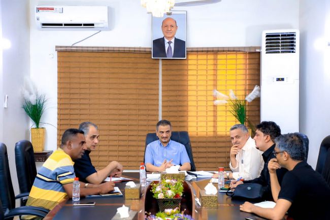 بحث معالي وزير الدولة محافظ العاصمة عدن الأستاذ أحمد حامد لملس مع رئيس مجلس الإدارة لصندوق الطرق والجسور المهندس معين الماس ومدير عام مكتب الأشغال العامة والطرق المهندس وليد الصراري