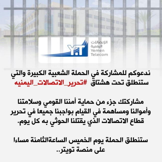 أعلن نشطاء محليين عن تنفيذ حملة إلكترونية مساء اليوم الخميس عبر هاشتاج #تحرير_الاتصالات_اليمنيه .