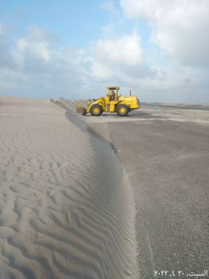 تستمر الفرق الفنية أعمال مشروع إزاحة الرمال من الخط الدولي الرابط بين العاصمة عدن والمحافظات الشرقية وسلطنة عمان والمملكة العربية السعودية بتمويل ذاتي من صندوق صيانة الطرق والجسور-