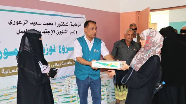 برعاية وزير الشؤون الاجتماعية والعمل الدكتور محمد سعيد الزعوري، دشنت مؤسسة يماني للتنمية والأعمال الإنسانية اليوم توزيع التمور لعدد من المراكز والجمعيات