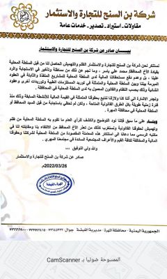 وقال الناشطين اطلعنا على البيان الصادر عن شركة بن السنح للتجارة