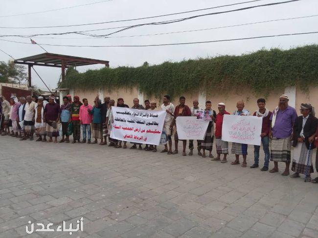 ضباط وأفراد لواء باصهيب ينظمون وقفة احتجاجية بلحج مطالبين بانصافهم
