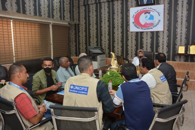 التقى السيد فياض احمد رسول مدير مكتب الامم المتحدة لخدمات المشاريع UNOPS في اليمن والوفد المرافق له بالدكتورة كفاية الجازعي مدير مستشفى الصداقة التعليمي العام بعدن.
