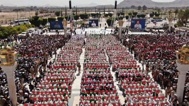 أقامت مليشيا الحوثي أكبر عرس جماعي في صنعاء، شمل 7200 عريس وعروس، بينهم لاجئين.