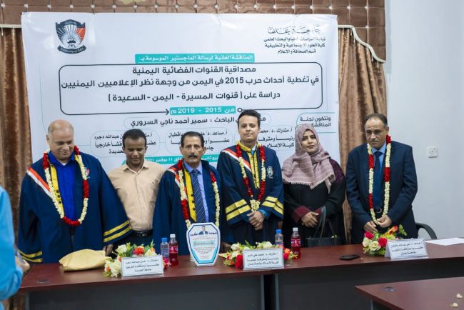 نال الباحث سمير السروري اليوم الخميس على درجة الماجستير في الصحافة والإعلام من كلية العلوم الاجتماعية والإنسانية بجامعة عدن وذلك عن رسالته الموسومة بـ’’ مصداقية