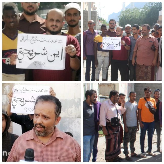 نظم عدد من المواطنين، صباح يوم اليرم الأربعاء، وقفة احتجاجية، أمام مقر شركة عدن نت ، بمديرية المعلا؛ للمطالبة بتوفير
