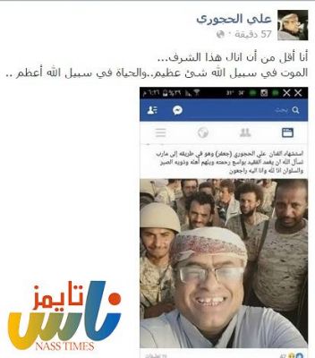 تداول ناشطون على صفحات التواصل الاجتماعي خبر استشهاد الممثل الكوميدي “علي الحجوري” المشهور بـ”جعفر” اثناء طريقه الى محافظة مأرب .