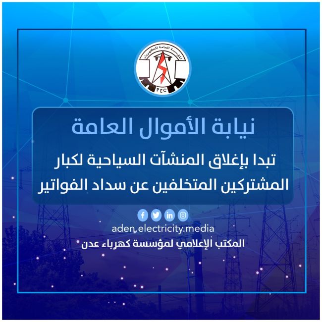 طالب محافظ العاصمة عدن الأستاذ أحمد حامد لملس القائم بأعمال رئيس نيابة الأموال العامة بالمحافظة فضيلة القاضي ناصر باعامر بتوجيه الجهات المعنية بإغلاق كافة المنشآت التجارية والفنادق