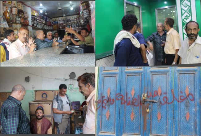 الصناعة بعدن تدشن حملة رقابية وتغلق سبع محلات تجارية وصرافة بمديرية الشيخ عثمان