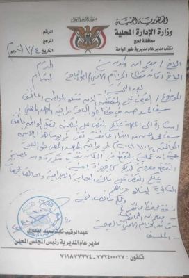 وجه، عبد الرقيب البكيري، مدير عام مديرية طور الباحة، في محافظ لحج، بإلقاء القبض على عصابة تقطع، أقدمت على قتل موظف أطباء بلا حدود.